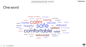 The online collaboration tool ‘Mentimeter’ was used to create a word cloud. Students were asked to submit a word that described how they hoped the detention centre created would make immigrants feel. The more a word was entered, the larger it grew. A nice way to capture thinking.